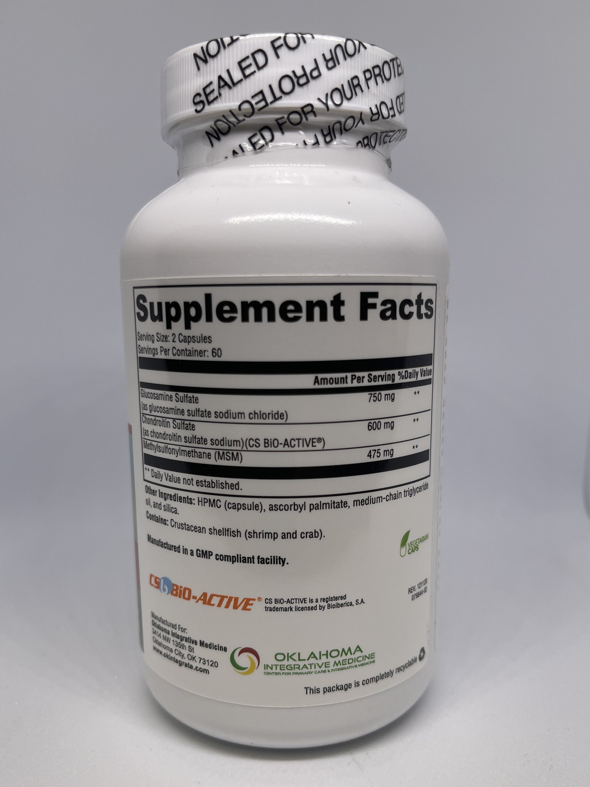 Synergistic combination of glucosamine, chondroitin, MSM, and astaxanthin. Glucosamine HCI is well absorbed and an important precursor for the synthesis and maintenance of connective tissues. Chondroitin sulfate supports formation of connective tissues, primarily joint cartilage, and help protect existing cartilage. MSM, a derivative of DMSO, is a naturally occurring compound of biologically available sulfur. Astaxanthin is a natural caratenoid that can help modulate the body’s normal inflammatory response.